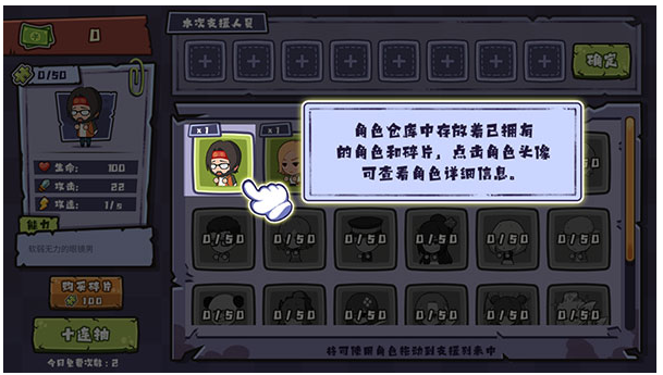 3、角色仓库中存的着已拥有的角色和碎片,点击角色头像,左侧可查看角色详细信息。