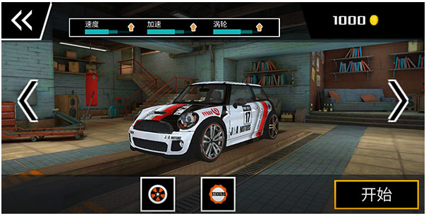 2、接着我们再挑选合适的赛车,挑选好后点击右下角的开始按钮。
