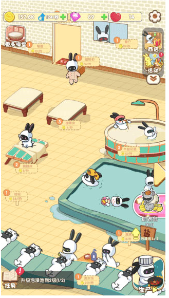 个性化的餐厅建设:玩家可以拓展高级生产线,招募可爱的兔子员工,建造各种风格的澡堂,打造独一无二的餐厅。