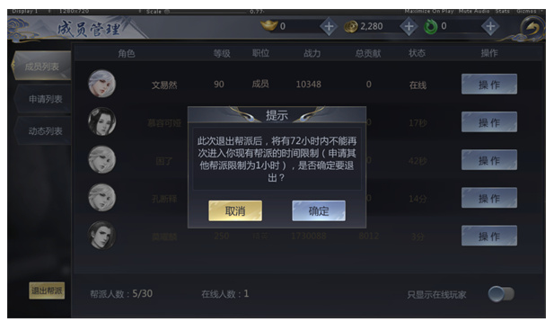 5、加入帮派的前提是自身当前不从属于任何帮派,且退出原帮派超过1小时,才可以加入新的帮派。若希望重新加入原来的帮派,则需要经过72小时后才能重新申请。