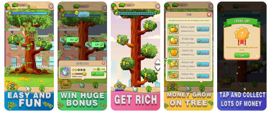 合成升级:玩家可以通过合成高级的摇钱树来提高收益,同时还可以通过升级来增加摇钱树的属性,提高收益。